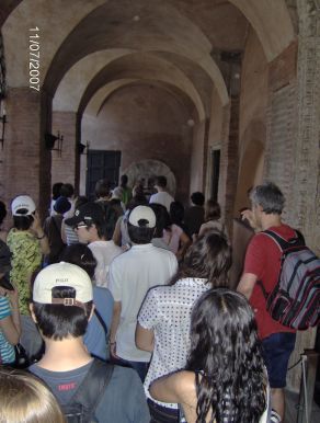 Levando-se em consideração estarmos em período de férias escolares e o bom tempo que se registra na Itália, a fila que se estendia desde a calçada até o interior da igreja não era das mais desafiadoras nesta época, para entrar na Capela Sistina ou no Coliseu é preciso rogar aos Deuses da Paciência.