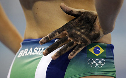 No país da operação Mãos Limpas, a mão suja sobre a bandeira nacional foi considerada a foto do dia no site do jornal Corriere de La Sera (http://www.corriere.it). Mas não é nada disso que você está pensando. A imagem é o detalhe da nossa medalha de ouro no salto com vara Fabiana Murer.