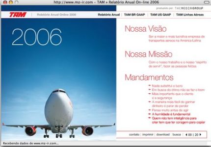 Eros, meu labrador que investe seus ossos no terreno lá de casa, ficou intrigado com a mensagem que recebeu de um pitbull da vizinhança e me repassou o e-mail. Queria que eu confirmasse a informação do anexo. A imagem divulgada, que agora reproduzo no blog, seria do Relatório Anual da TAM, de 2006, no qual a empresa é explícita ao dizer que a visão da empresa é “ser a maior e mais lucrativa de transportes aéreos na América Latina”.