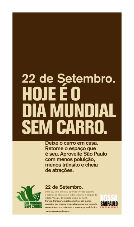 Oi, Mílton Jung! Aqui no Rio também está colocado o desafio do dia mundial sem carro : ) Vou ao Engenho Novo, de barcas, depois ônibus 232, ufa, assistir as artes da meninada nas comunidades de base, respondendo ao convite da rede de saúde. Lembrei de Moraes, quando dizia “meu lugar é quando”. Curta o evento em SP por mim também! Um abraço, Dionnara.