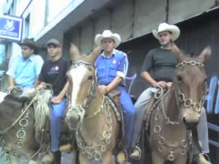 É comum ver outros cavaleiros na Paulista, mas eles andam fardados e usam sabre!
