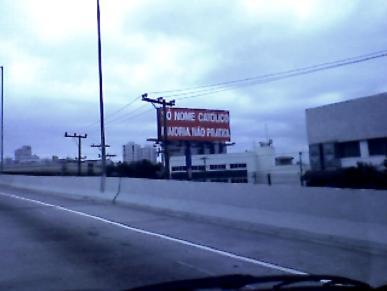 As mensagens religiosas seguem desrespeitando a lei Cidade Limpa, em São Paulo. Este cartaz foi flagrado pelo ouvinte-internauta Leandro Ferreira ao lado do Viaduto Antártica. A frase é a mesma de outro outdoor registrado neste blog (veja nos arquivos ao lado) que está próximo da Avenida Francisco Morato. Leandro além de registrar em foto o anúncio, também gostaria de saber quem é que paga por esta propaganda anônima.