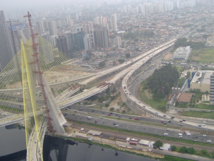 O Complexo Viário Jornalista Roberto Marinho vai ganhar esta ponte estaiada que já causou muita controvérsia desde que iniciada na administração Martha Suplicy. Com as obras bem adiantadas possivelmente vai ser inaugurada em 2008 (quanta inauguração marcada para 2008, diria Eros, meu Labrador que adora a Lúcia Hipolito) a ponte ganhou apelido dos paulistanos bem-humorados: Estilingão. A brincadeira tem origem no formato das torres que sustentam parte da ponte que acompanhadas dos cabos de aço amarelos parecem um enorme estilingue.