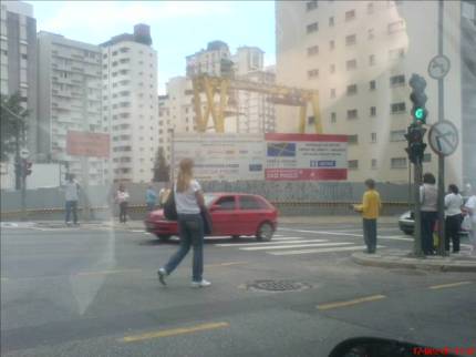 O desrespeito a Lei Cidade Limpa não parte apenas da prefeitura, como vimos em nota anterior. As duas placas com informações da obra do metrô, na esquina da Oscar Freire com a Rebouças, são do Governo do Estado e não seguem as normas impostas pela administração municipal. A imagem foi feita e enviada pelo celular do ouvinte-internauta Guilherme Morai.