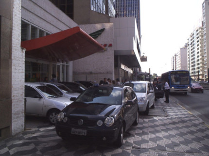 1. Além dessa “invasão calçadistica”, os motoristas que aí param seus motorizados ainda se comportam como maus meninos e meninas, tratando os pedestres como se fossem intrusos do “seu espaço”. Isso já testemunhei não só nessa localização mas em várias outras pela cidade. Definitivamente, essa é a cidade dos automóveis. Se você for “amigo do rei” (vulgo motorista), você tem o “poder”. Só que esse poder geralmente leva o cidadão para seu lado escuro …