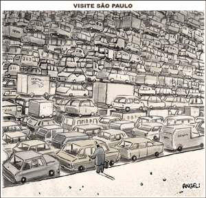 Ao mesmo tempo que o cartunista Angeli desenhou seu olhar sobre o trânsito na capital paulista na edição dominical da Folha, o presidente da CET Roberto Scaringella concedeu entrevista ao jornal e expôs seu pessimismo em relação a mobilidade do cidadão. Em um dos trechos da entrevista, o homem responsável pelo planejamento do trânsito paulistano levantou a possibilidade de proibir o estacionamento em ruas e avenidas movimentadas: