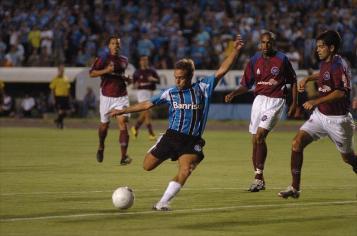 Esforço de Roger na imagem flagrada pelo site Gremio.net