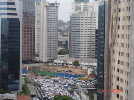 Da janela do apartamento, o ouvinte-internauta Edivaldo Ferreira registra uma ilha de carros cercada por prédios em construção, na Vila Olímpia. Em primeiro plano, dois conjuntos empresariais a serem entregues, pouco mais atrás um shopping sendo erguido, bem ao fundo a Daslu que ganhará vizinho novo: outro shopping.