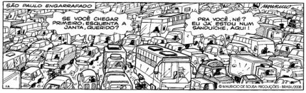 O congestionamento de São Paulo, segundo informação do G1, inspirou Maurício de Souza e a Turma da Mônica. O portal mostra algumas das tirinhas criadas pelo cartunista mais famoso do Brasil. Quem seria o prefeito nesta cidade desenhada por Maurício ?