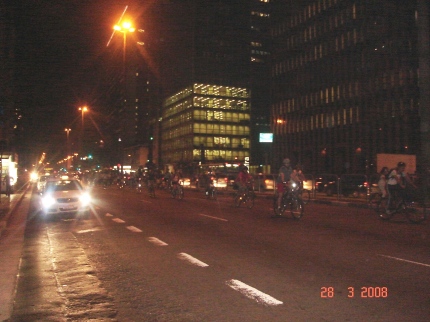 A turma da bicicleta encara a avenida Paulista, na sexta-feira à noite, para mostrar à cidade que ciclista também é gente. A imagem foi feita pelo ouvinte-internauta Daniel Aveiro e o evento se repete toda última sexta-feira do mês, há cinco anos.