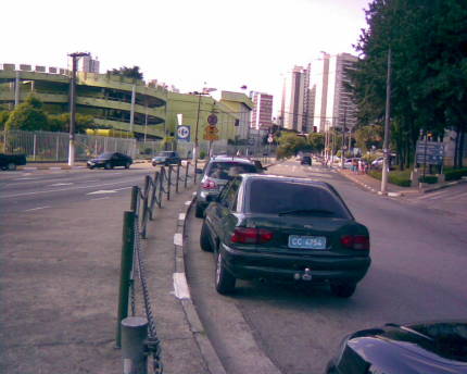 O carro com placa do corpo consular, assim como os demais que o acompanham, estão ilegalmente estacionados em frente ao Shopping Plaza Sul, na Ricardo Jafet. Não entenderam o sinal que impede de parar e estacionar.