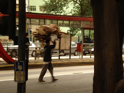 A participação dos coletores de papel no serviço de reciclagem é importante e pouco incentivada na cidade de São Paulo. Muitos dos trabalhadores que atuam nesta área são mal-vistos pela sociedade – e pela prefeitura, também. O ouvinte-internauta Marcos Paulo Dias acompanha diariamente a travessia deste pessoal na Nove de Julho e fez uma série de fotografias que você pode acompanhar clicando na imagem acima. Conte para a gente o que você faz para reduzir a quantidade de lixo produzida na cidade e ajudar a reciclar o resíduo sólido.