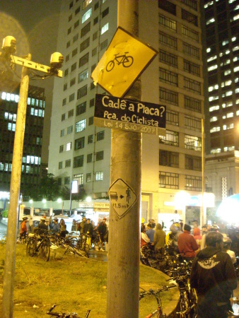 O ciclista André Pasqualini, um dos líderes do movimento, me informa sobre o diálogo que mantém, por e-mail, com o secretário municipal das Subprefeituras, Andrea Matarazzo. Ontem, o secretário propôs que o encontro dos ciclistas fosse transferido para a praça José Molina, próxima dali devido a reforma na avenida. Idéia que não foi aceita pelo que representa o espaço conquistado.