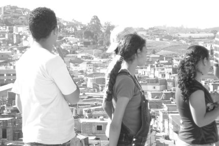 Então a gente saiu pela quebrada procurando poesia pra se coçar. No caminho fomos falando sobre a importância da poesia e da literatura na vida das pessoas e como ela estava abundante na periferia. Fomos andando a esmo, como quem caminha sem objetivos, mas com a fé de quem percorre o Caminho de Santiago de Compostela. Quem sabe tirar um Paulo Coelho da cartola? Aí fui perguntando a eles o que/ porque eles viam, coisas banais para aguçar o olhar poético, ou apenas pelo prazer de uma conversa com pessoas tão agradáveis quanto eles. Daria um rim para ter quinze anos novamente… os adultos maltratam os jovens porque são invejosos e não perdoam a alegria que nasce da inocência.