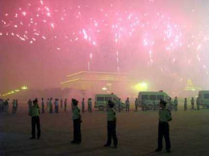 A turma é pequena mas bate um bolão. Fala da frente do telão, corre para a praça, entrevista brazuca e atualiza as informações no rádio, na internet e no blog. A imagem logo acima está no blog olímpico da CBN, onde você encontra uma série de fotos como esta que mostra como a beleza da abertura dos Jogos foi capaz de tirar a atenção mesmo do mais rígido sistema de segurança.
