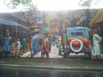 O painel está na Avenida Morumbi, próximo da ponte, e mostra a cidade em que os pedestres ainda eram prioridade. A imagem foi feita pelo ouvinte-internauta Flávio Knopp que aproveitou o trânsito complicado da avenida para apreciar de dentro do carro esta cena: Não sei se é propaganda, não sei se é apenas artístico, não sei qual é a intenção da pintura, mas é um trabalho fantástico