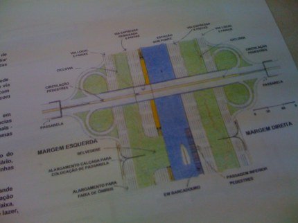 Gregório não gostou nada daquela história de cobrir o Tietê com uma laje e pediu para que o pai cobrasse do candidato na primeira oportunidade. Cobrei. A resposta veio acompanhada de um sorriso e uma falsa auto-crítica: eu às vezes tenho dificuldade para me comunicar com as pessoas. Sacou do meio dos papéis duas folhas nas quais havia desenhos e algumas explicações sobre o que considera o projeto definitivo para os congestionamentos em São Paulo.