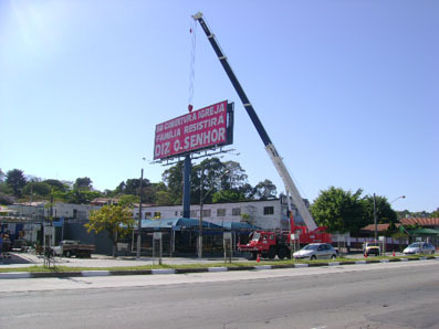 Sempre foi um mistério a manutenção deste painel na Avenida Vicente Rao com dizeres supostamente religiosos, mas quase sempre sem nexo. Pois, a prefeitura de São Paulo conseguiu, finalmente, colocar abaixo o anúncio que insistia desrespeitar a Lei Cidade Limpa.