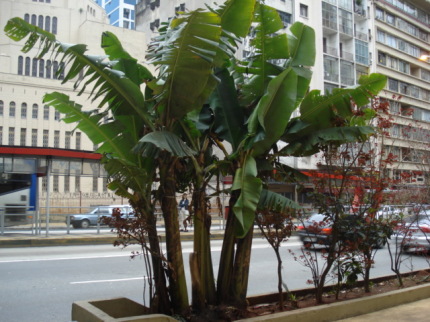 Foi o olhar atento do sempre atento ouvinte-internauta Marcos Paulo Dias que encontrou esta bananeira que resiste ao trânsito e poluição da Nove de Julho, na Bela Vista, em São Paulo. As bananas estão à disposição de quem passar diante da parada INSS do corredor da Nove de Julho.
