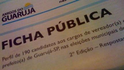 Foi o que o movimento Amigos do Guarujá buscou ao desenvolver a pesquisa candidatal que ouviu 190 dos 275 pretendentes a uma vaga na Câmara Municipal e os cinco que querem assumir a prefeitura no ano que vem. O material está publicado em jornal de 62 páginas e tiragem de 20 mil cópias distribuído na cidade.