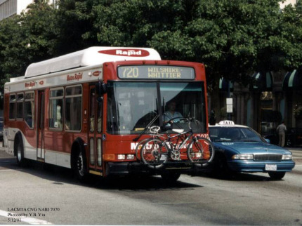 Há 10 anos, em Los Angeles, o serviço Metro Rapid possui ônibus com cavaletes próprios para transportar bicicletas., disse em sua mensagem enviada ao blog. Há vários lugares dos Estados Unidos nos quais os ônibus estão adaptados para o convívio com os ciclistas.