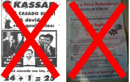 Muito pior do que qualquer propaganda que tenha sido feita nesta eleição é a forma como alguns grupos políticos tem agido nesta última semana. Depois de receber na porta de casa um panfleto apócrifo contra Marta Suplicy (PT), chegou ao blog por e-mail outro contra Gilberto Kassab (DEM). Este quem me encaminhou foi um ouvinte-internauta incomodado com o nível que a campanha chegou.