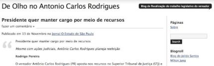 Nas primeiras postagens, Joildo relaciona os bens do vereador Antonio Carlos Rodrigues, dados obtidos no site da Transparência Brasil. Uma boa idéia para você que pretende adotar um vereador.
