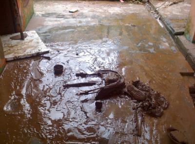 A Chuva desse dia foi tão deselegante com os órfãos que acabou com todo o estoque de comida, derrubou os muros da casa, deletou os computadores, arruinou a enfermaria e de quebra levou córrego abaixo, todo o estoque de sapatos novos que eles ganharam de presente de natal. Agora eles estão literalmente com os pés descalços.