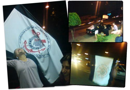 Perdeu o foco da máquina, mas não a festa de campeão. Para quem sofreu há um ano na Segundona, a conquista do Paulista, neste domingo, tinha de ser mesmo comemorada pela Cátia Toffoletto que saiu às ruas assim que se encerrou a final. Era tanta alegria que não dava para conter até segunda, por isso ela já mandou hoje mesmo estas imagens da festa familiar em homenagem ao 26º Campeonato Paulista do Corinthians.