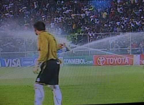 O gramado do estádio Olímpico de Caracas deve ter sido usado para provas de hipismo poucos antes dos dois times entrarem em campo. A quantidade de buraco na grama não permitia que o toque de bola se completasse. Jogadas rasteiras acabavam no peito do companheiro. Ao quicar era impossível saber para que lado a bola iria correr, normalmente costumava seguir para o menos provável. A encrenca era tal que bastou o empate sair para o sistema de irrigação ligar “sozinho”, esfriar a reação do Imortal e encharcar o gramado.
