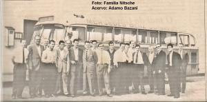 Na foto acima, Carlos Alfredo Nitsche aparece abaixo do retrovisor em frente ao ônibus monobloco O 321 com parte da equipe de operários e diretores da Mercedes Benz, do Brasil, em São Bernardo do Campo.