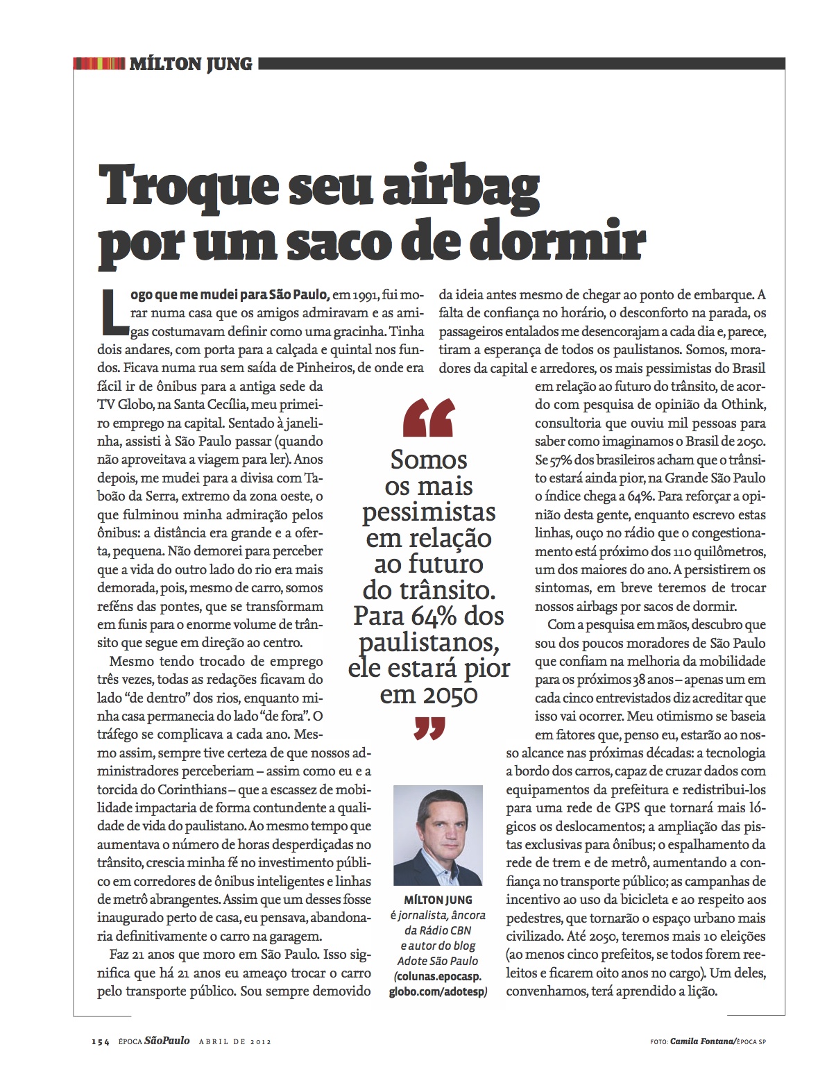 4 comentários sobre “Na Época SP: “Troque seu airbag por um saco de dormir”