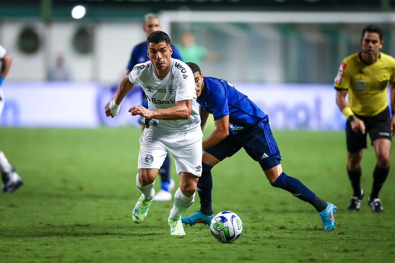 Suárez ensaia arrancada em direção ao gol em foto de Lucas Uebel/GrêmioFBA
