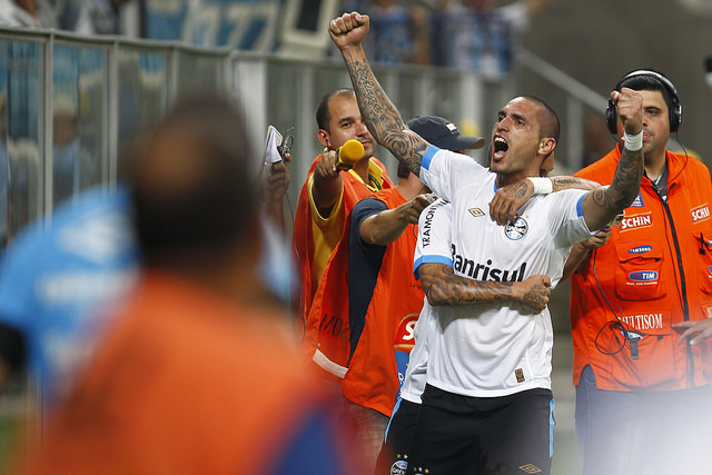 Era Braian Rodríguez, que saiu do banco, do ostracismo, da insignificância, quem se jogou entre os zagueiros para deixar a bola explodir no seu rosto e ser desviada para dentro do gol. Um pouco antes havia feito algo parecido com os pés, quando aparentemente não tinha mais nem uma chance de superar o marcador. E eu fiquei pensando sobre o tamanho do desespero deste gringo para voltar a marcar com a camisa do Grêmio, algo que havia feito apenas uma vez, desde que chegou. Pois não é que, em seguida, ele marcou.