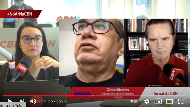 Reprodução do vídeo da entrevista com Gilmar Mendes no Jornal da CBN
