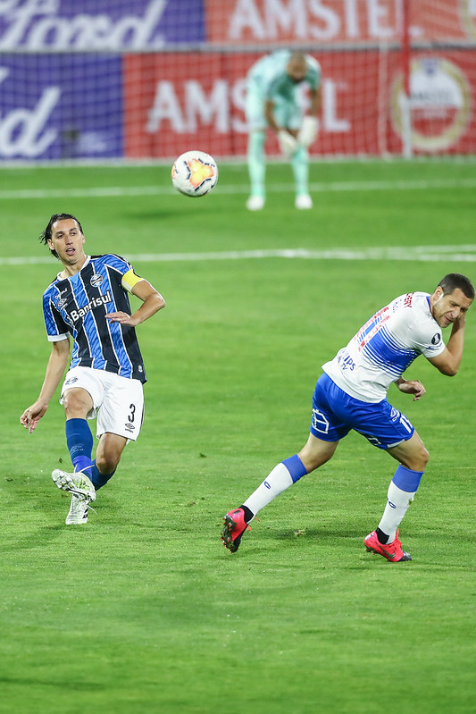 Geromel espanta a bola em foto de LUCASUEBEL/GRÊMIOFBPA