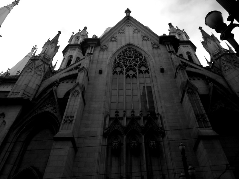 A Igreja era pouco iluminado. A luz externa, filtrada pelos vitrais ao alto, era difusa e não suficiente para iluminar a nave. Nem mesmo a iluminação artificial dava conta da tarefa. Nós entrávamos, agradecíamos a vida que tínhamos, e alguns minutos depois saíamos para o passo seguinte de nosso encontro, quando passeávamos pelas ruas do entorno, observando as vitrines das muitas lojas.