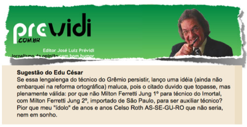 A minha admiração e respeito por ele sempre será enaltecida neste espaço, mesmo com todas as ressalvas que já fiz e registrei em Avalanches passadas. Mais do que isso, porém, é que faço questão de dar crédito a quem merece, sem desmerecer os demais.